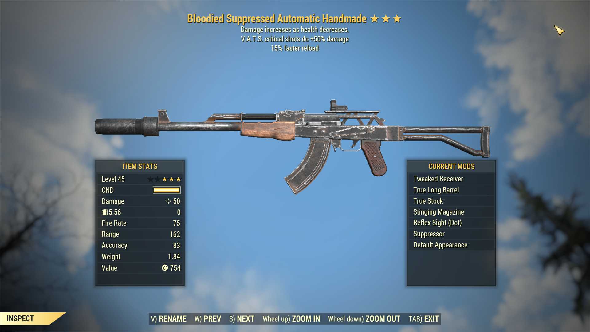 Bloodied Handmade (+50% critical damage, 15% faster reload)
