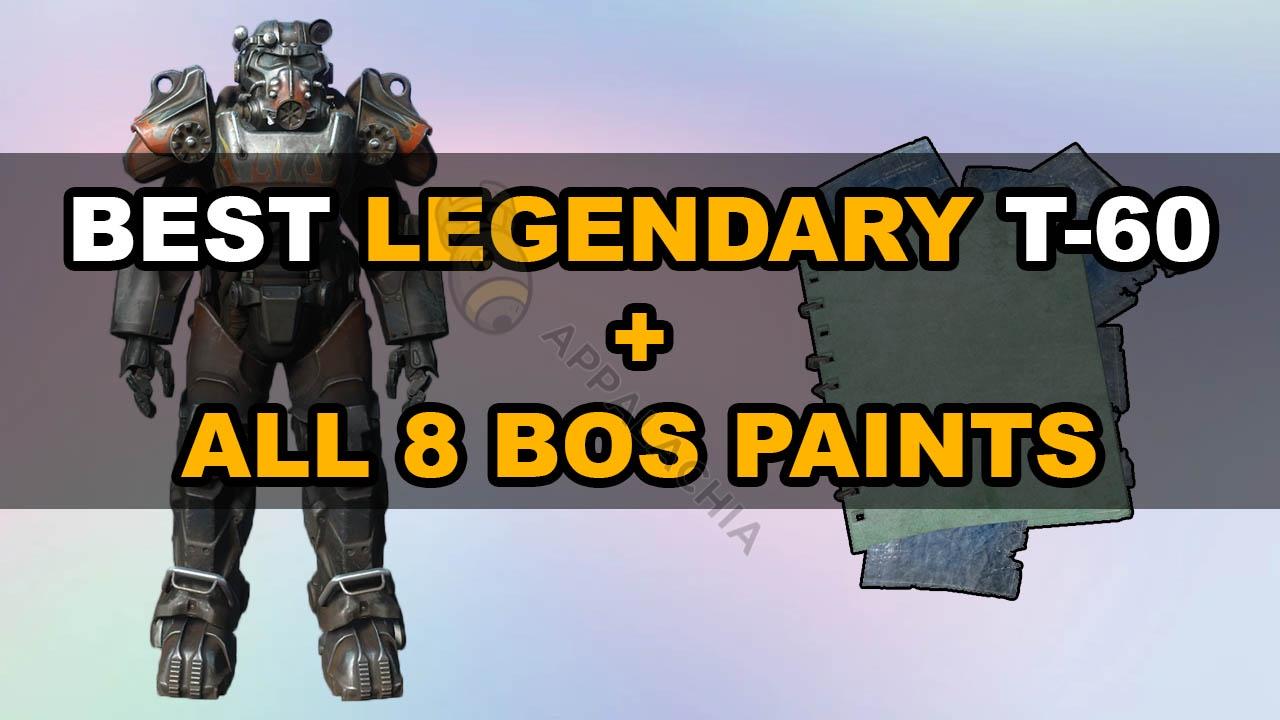 Fast delivery 5-20 min if im online. This bundle include: T-60 Unyielding Sentinel (5/5 AP REFRESH) Power armor Set Plan: T-60 BOS Elder Paint Plan: T-60 BOS Initiate Paint Plan: T-60 BOS Knight CPT Paint Plan: T-60 BOS Knight Paint Plan: T-60 BOS Knight SGT Paint Plan: T-60 BOS Officer Paint Plan: T-60 BOS Paladin Paint Plan: T-60 BOS Sentinel Paint