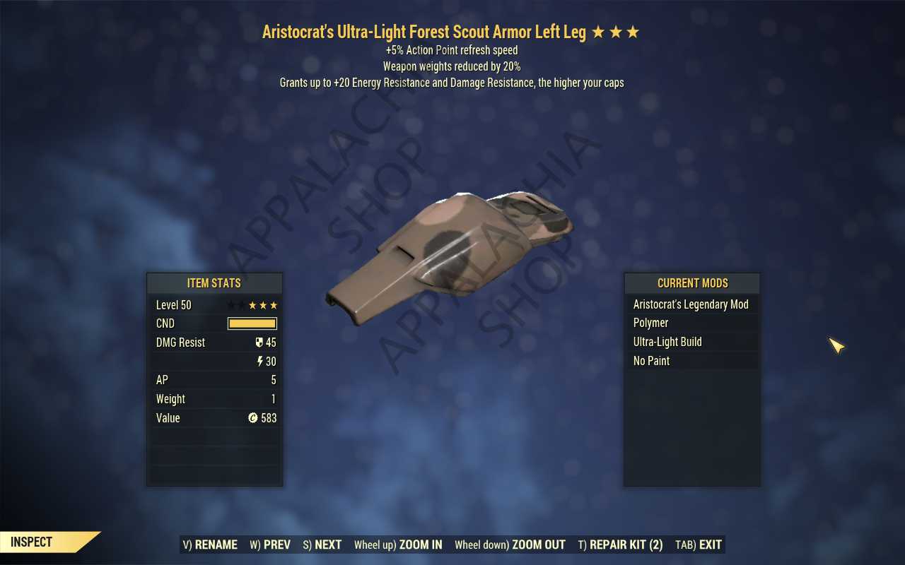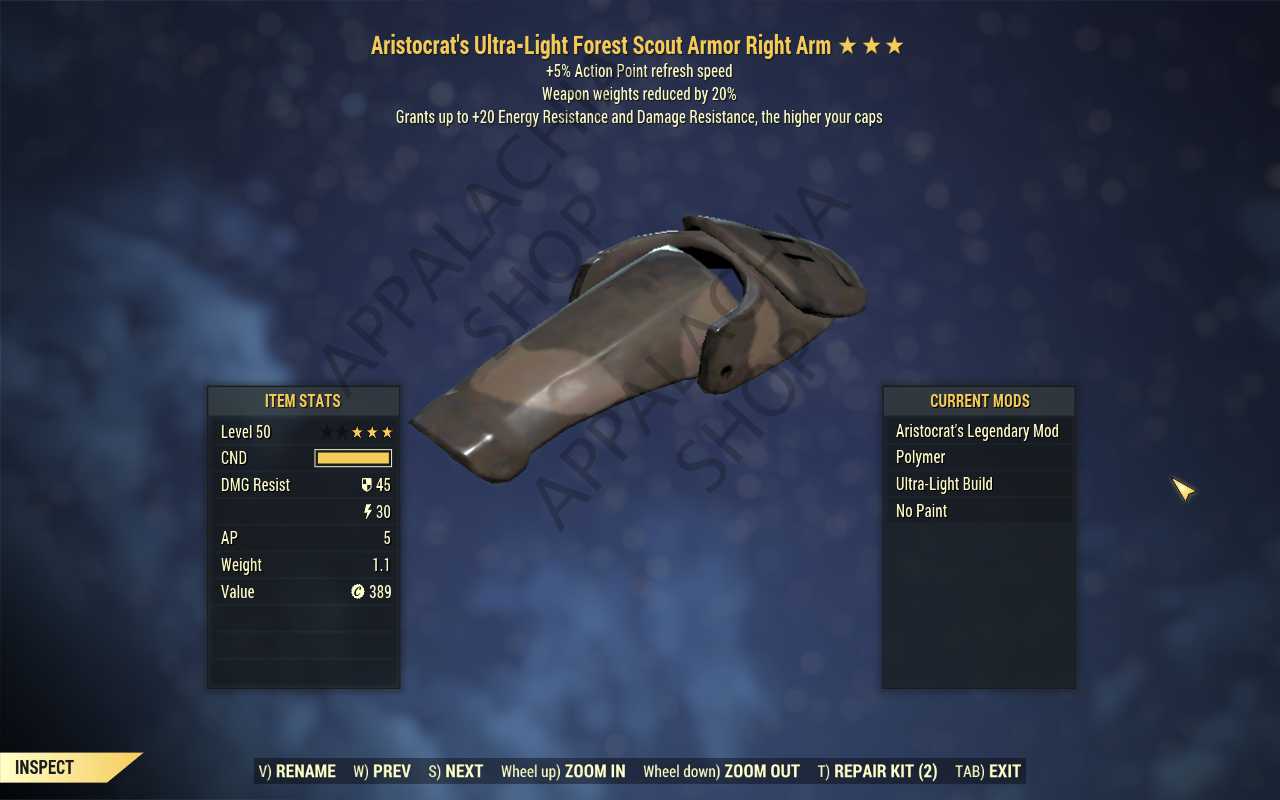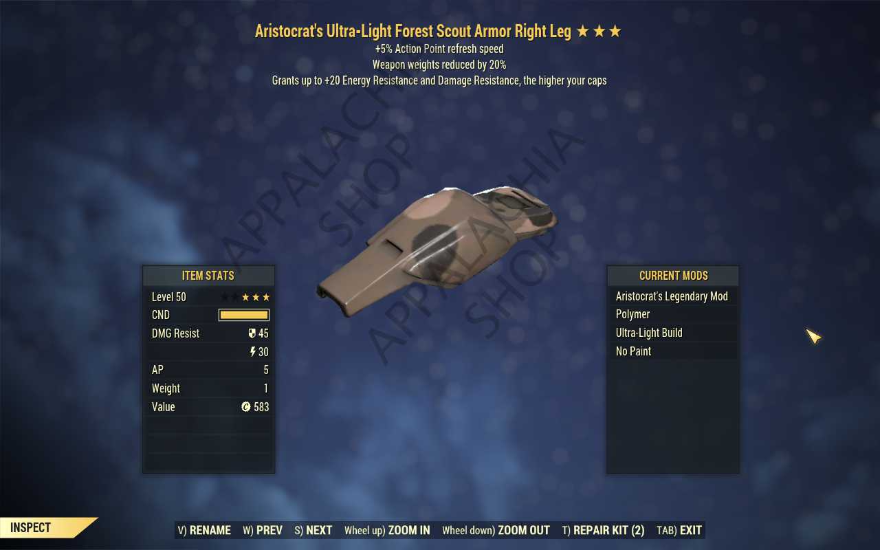 [ARI AP WWR]Aristocrat's Weapon Weight Reduction Scout Armor Set (5/5 AP) [Forest]
