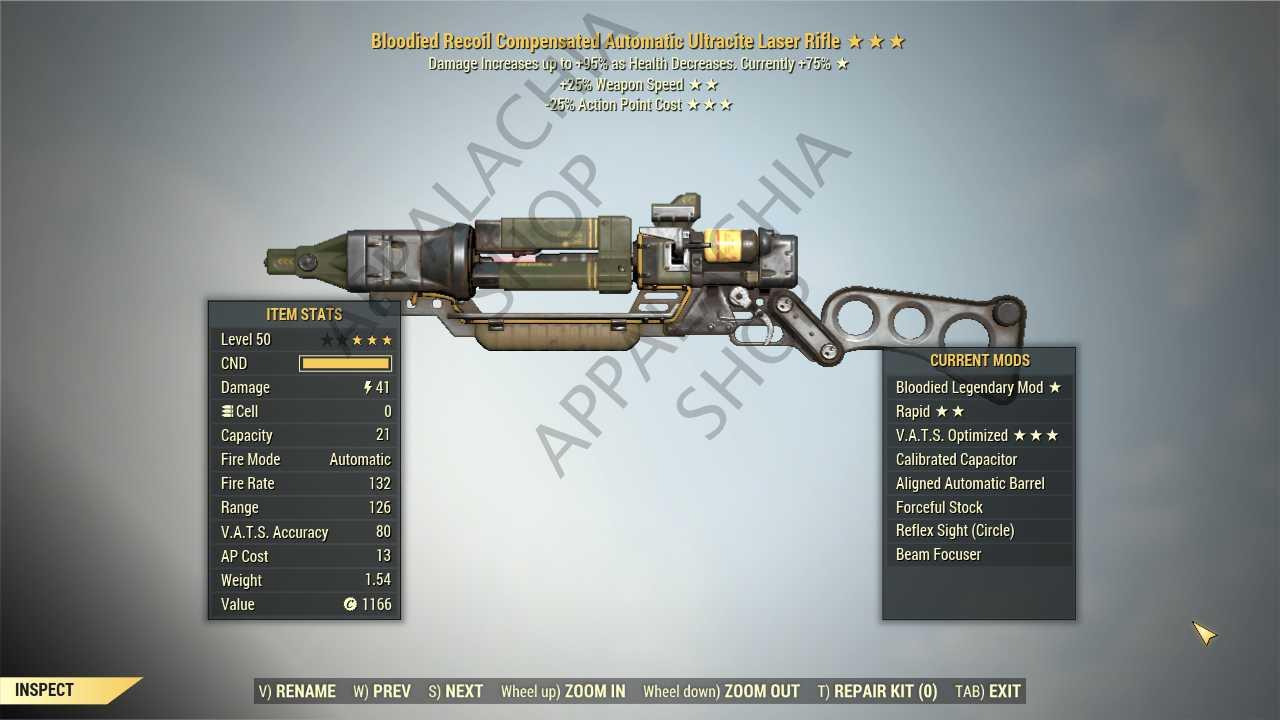 Bloodied Ultracite Laser rifle (25% faster fire rate, 35% less VATS AP cost)