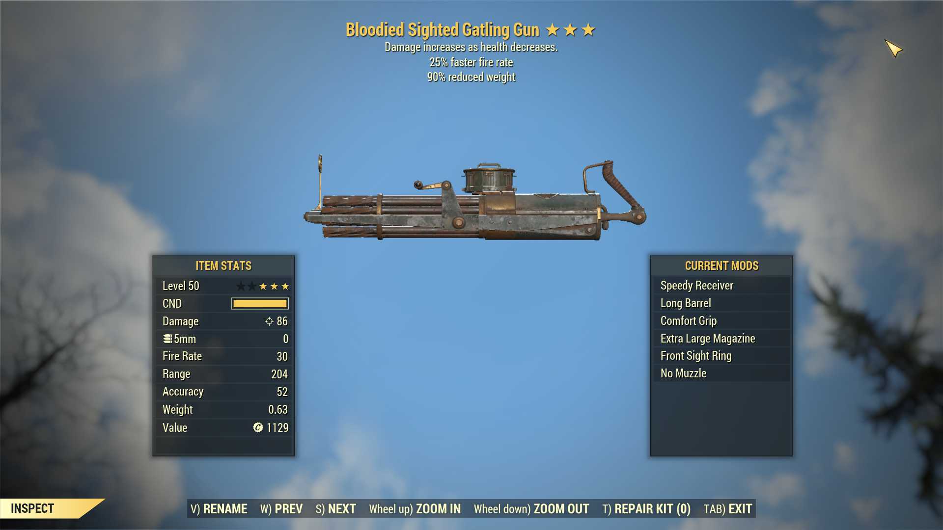 Bloodied Gatling Gun (25% faster fire rate, 90% reduced weight)