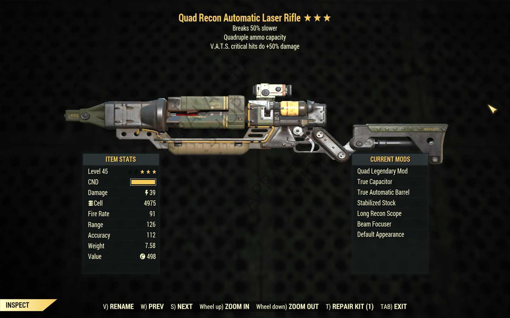 Quad Laser rifle (+50% critical damage, Breaks 50% slower)