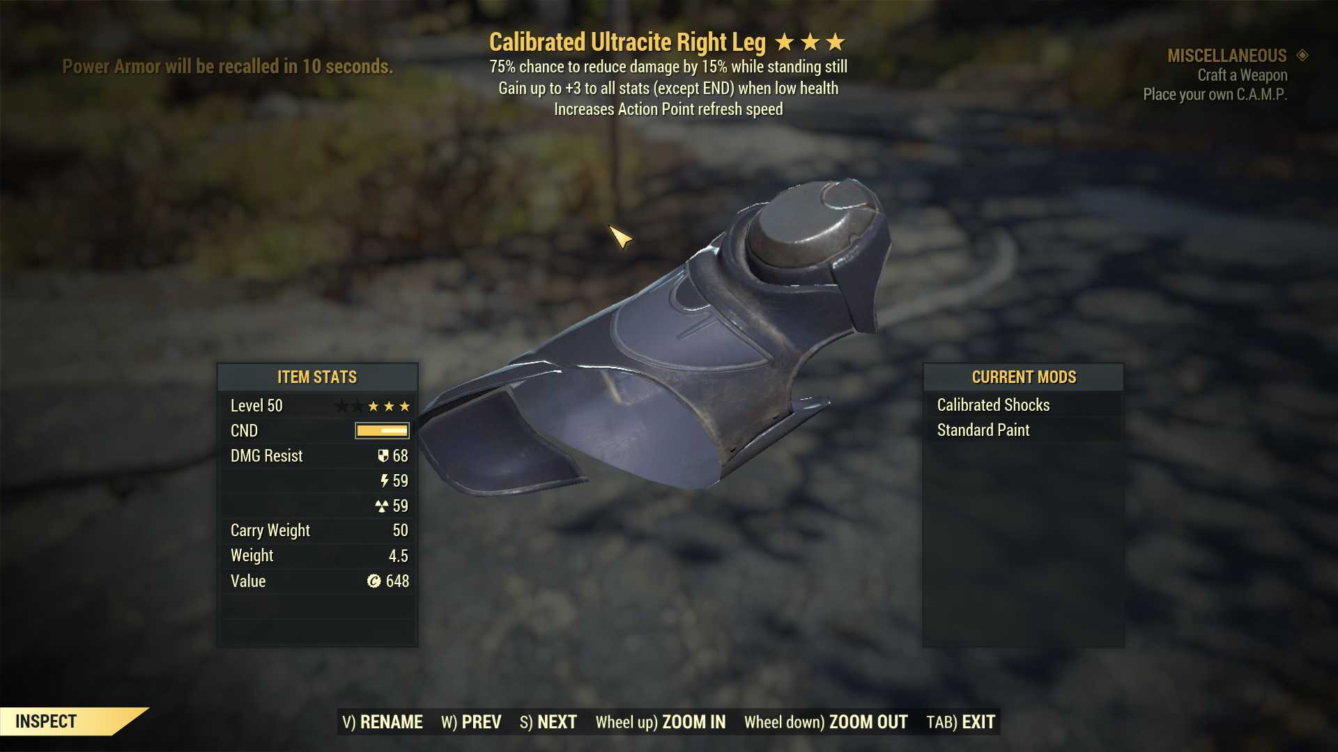 [Legendary Power Armor] Unyielding Sentinel Ultracite Power Armor Set (5/5 FULL AP REFRESH)
