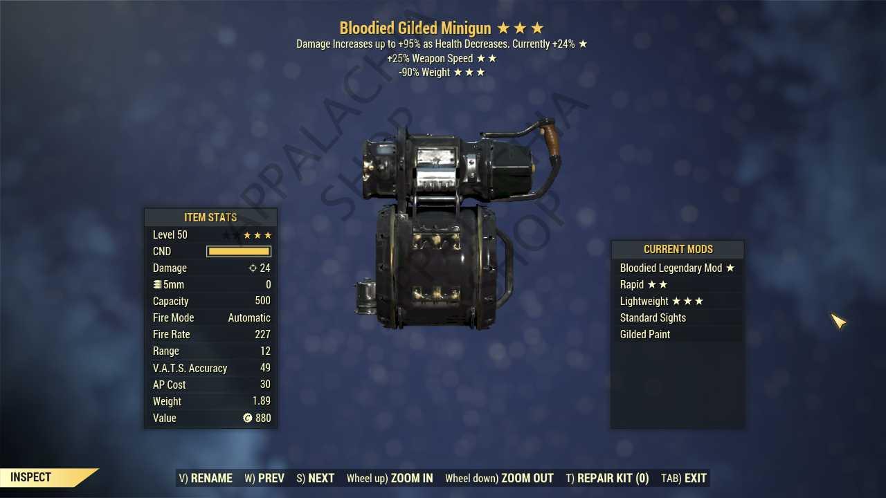 Bloodied Minigun (25% faster fire rate, 90% reduced weight) [Invisible barrel] [Collector item]