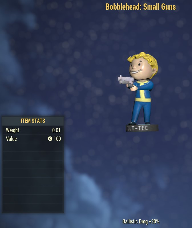 x1000 Bobblehead Small Guns (+20% more damage with ballistic guns for 1 hour)