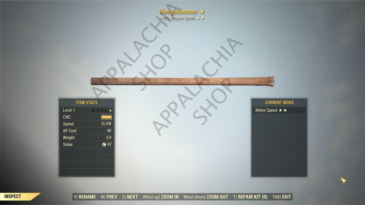 Sledgehammer (40% Faster Swing Speed)[1 lvl][particle invisible] [No Damage] [Collector item]