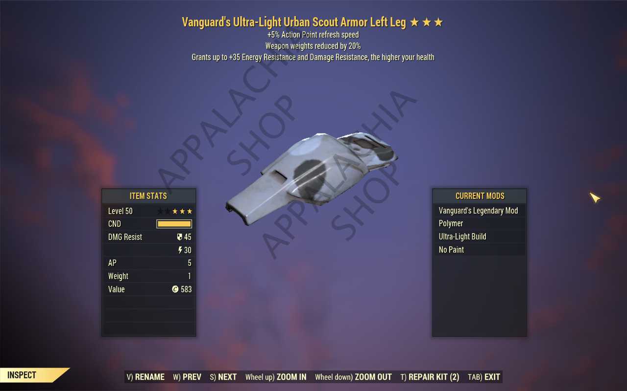 [VAN AP WWR]Vanguard's Weapon Weight Reduction Scout Armor Set (5/5 AP) [Urban]