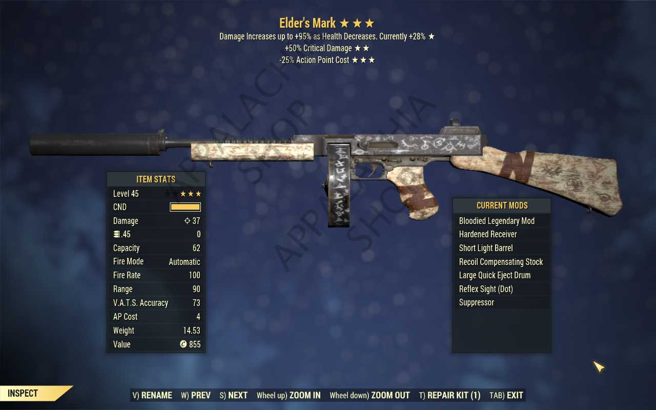Bloodied Elder's Mark (+50% critical damage, 35% less VATS AP cost)