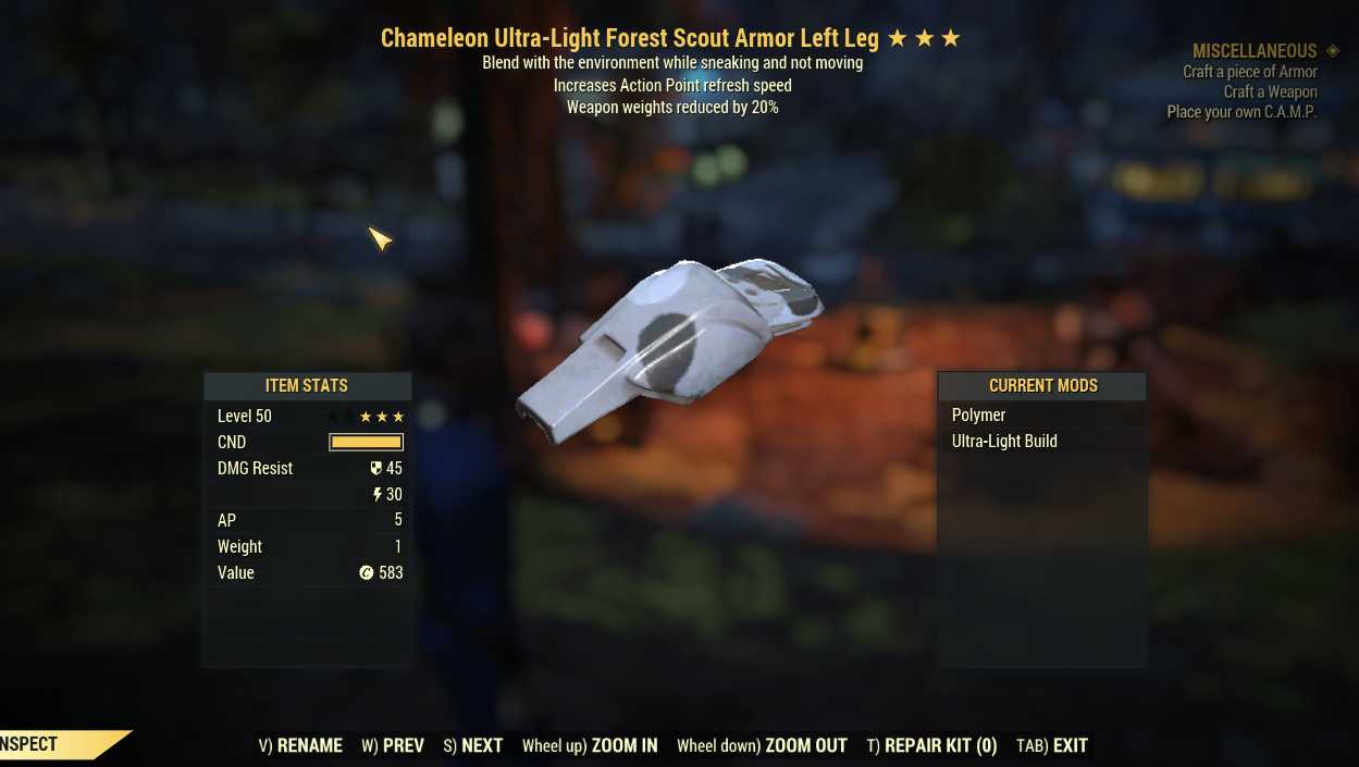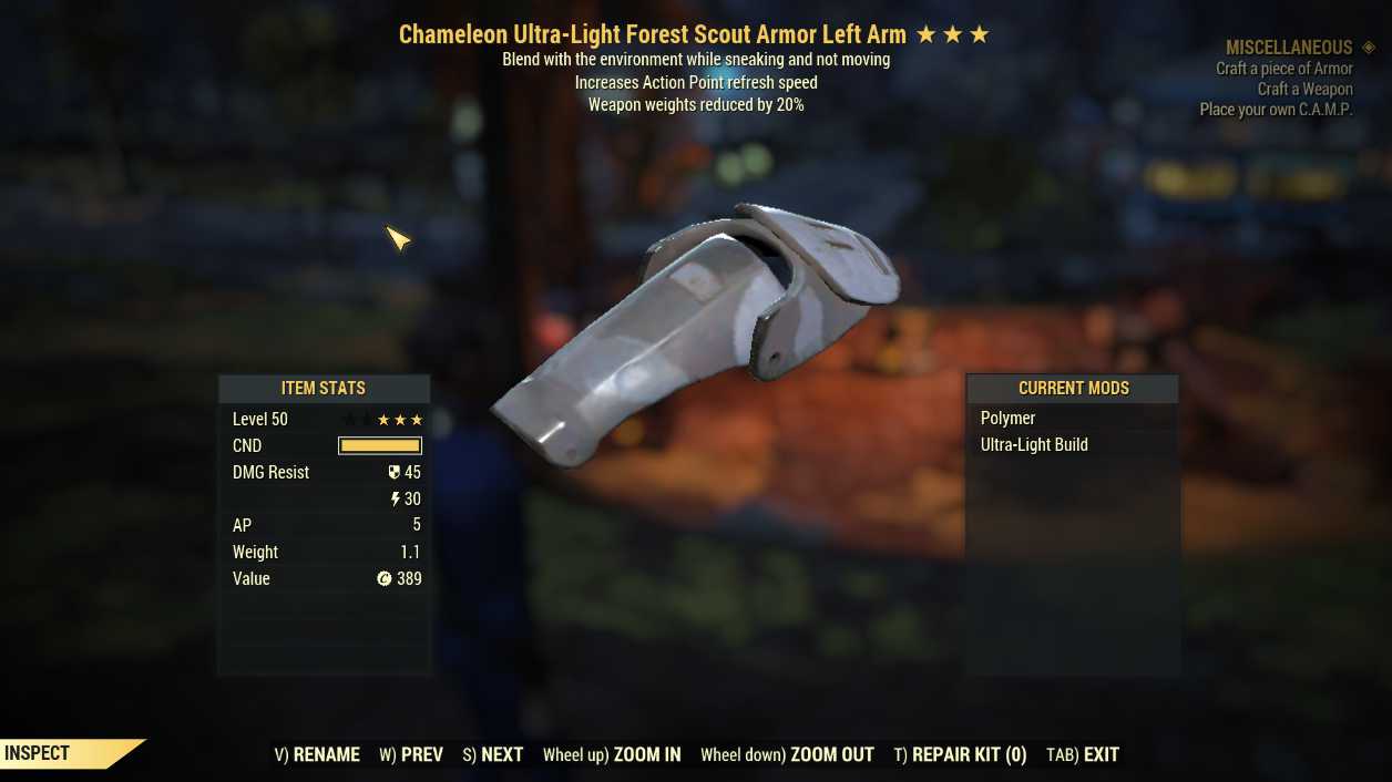 [CHAM AP WWR]Chameleon Weapon Weight Reduction Scout Armor Set (5/5 AP) [Forest]