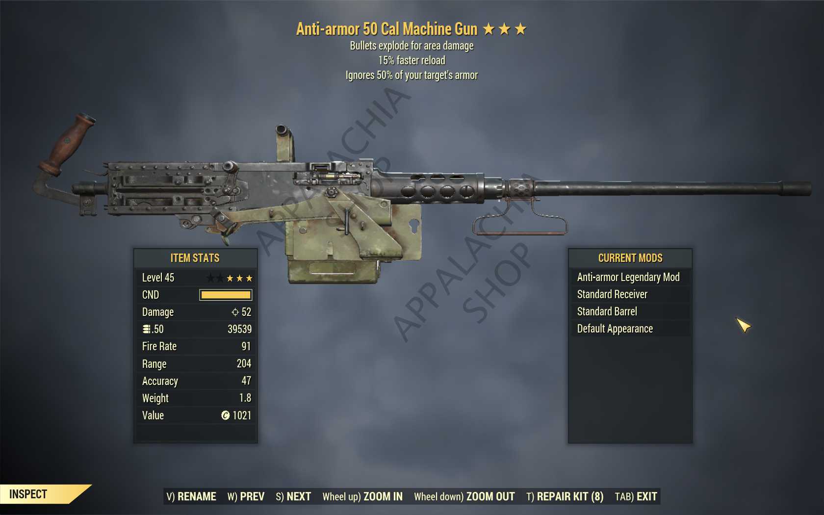 Anti-Armor Explosive 50 Cal Machine Gun (15% faster reload)