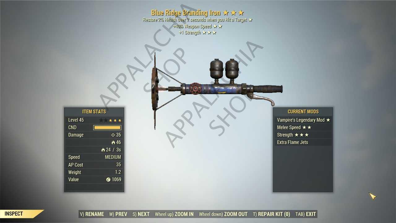 Vampire's Blue Ridge Branding Iron (40% Faster Swing Speed, +1 Strength)
