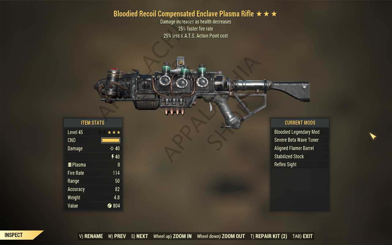 Bloodied Enclave Plasma rifle (25% faster fire rate, 35% less VATS AP cost)