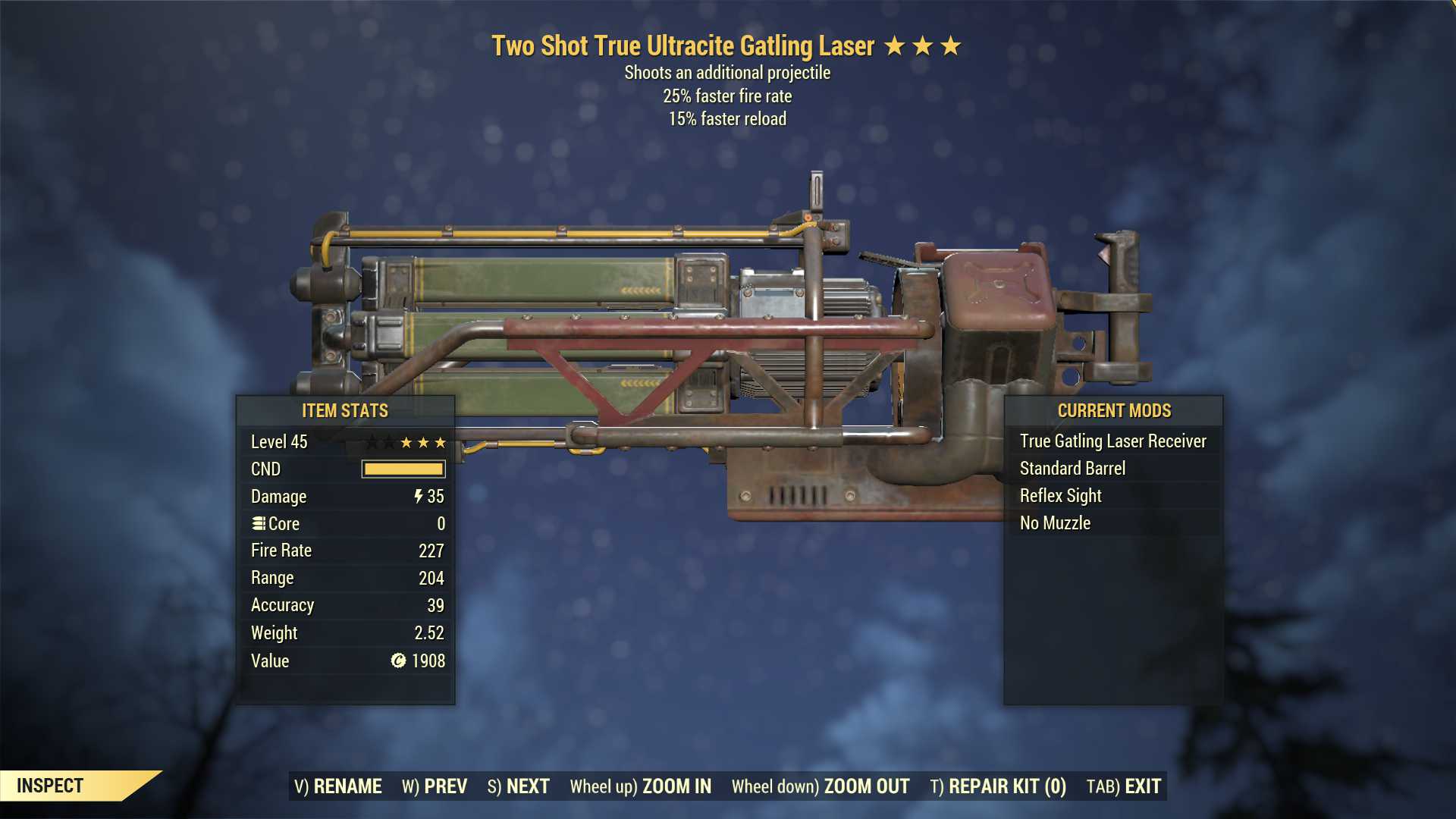 Two Shot Ultracite Gatling Laser (25% faster fire rate, 15% faster reload)