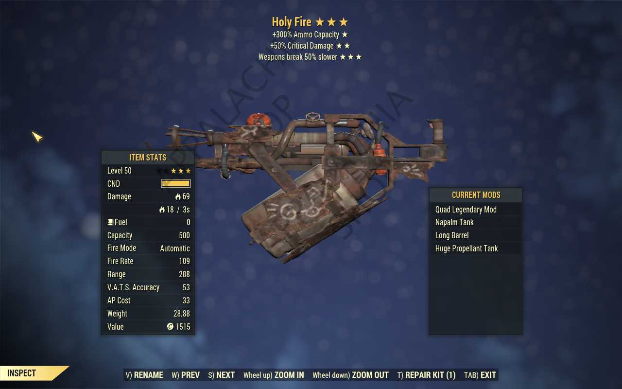 Quad Holy Fire (+50% critical damage, Breaks 50% slower)