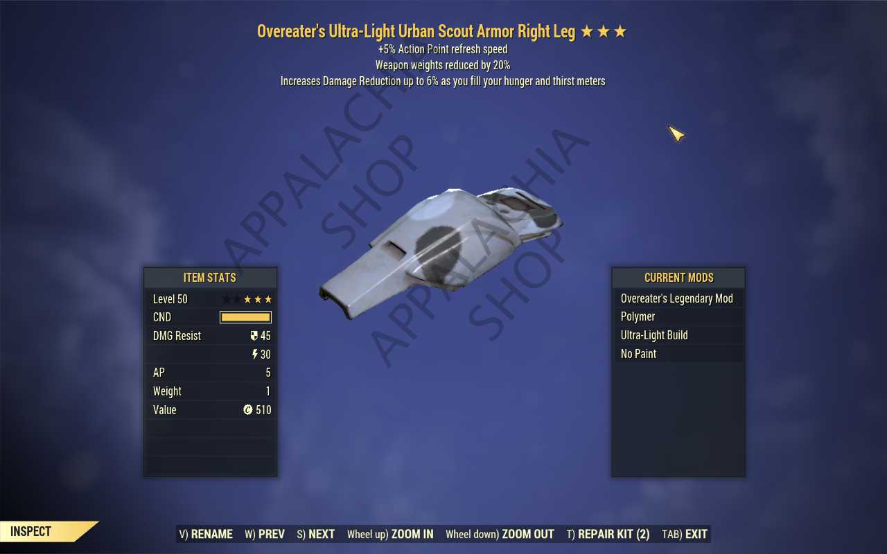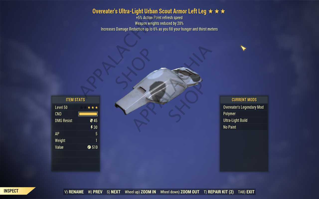 [OE AP WWR]Overeater's Weapon Weight Reduction Scout Armor Set (5/5 AP) [Urban]
