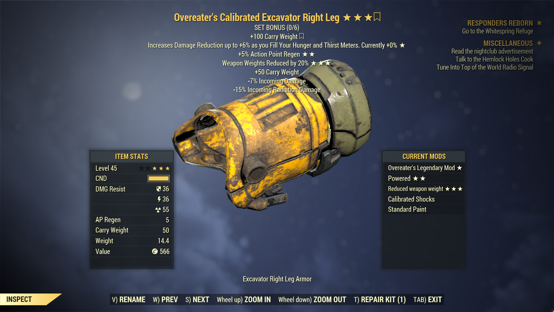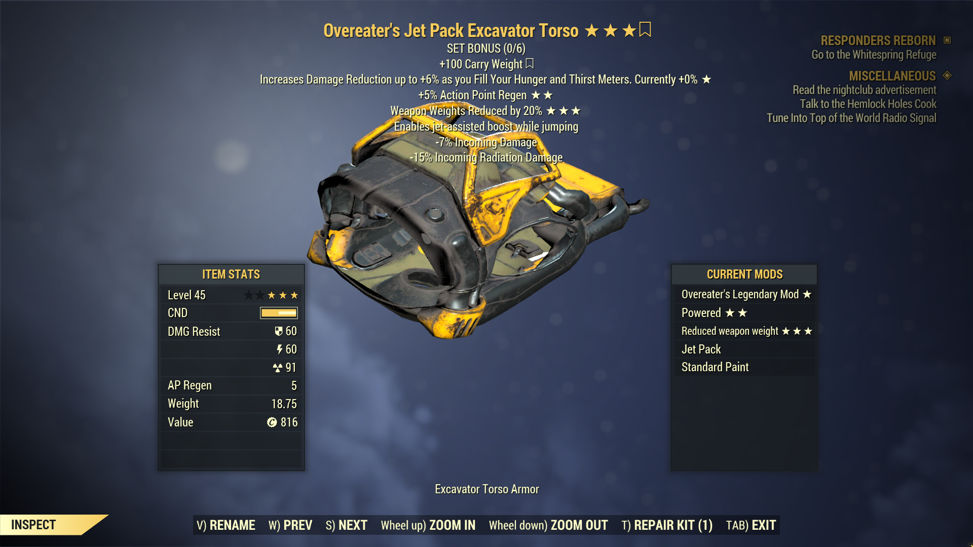 Overeater's Excavator Power Armor Jet Pack Torso 6/6 Full Set
