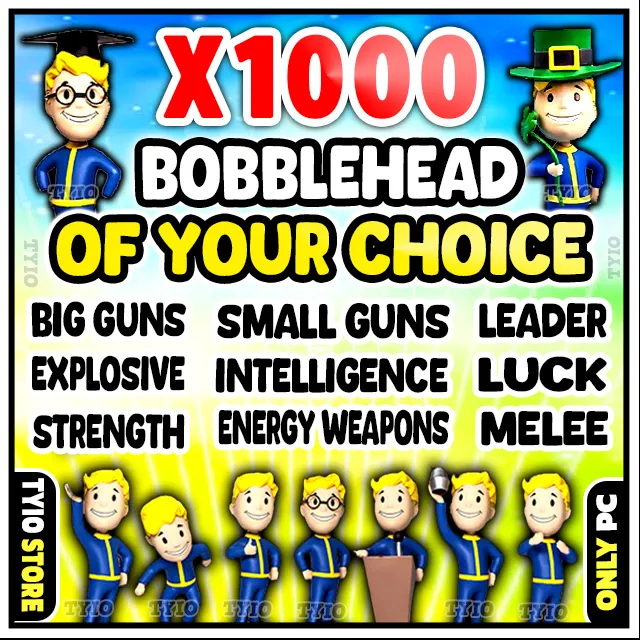 1000 BOBBLEHEAD OF YOUR CHOICE Bobblehead { Big Guns - Leader - Melee - Small Guns - Energy Weapons - Intelligence - Explosive - luck - strength}