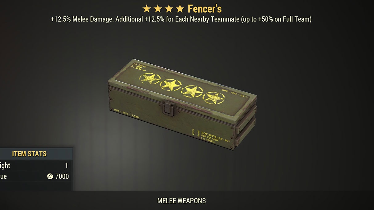 +12.5% Melee Damage. Additional +12.5% for Each Nearby Teammate (up to +50% on Full Team)