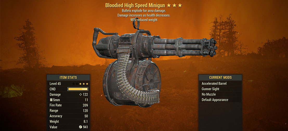 Bloodied Explosive Minigun Installed Modifications: