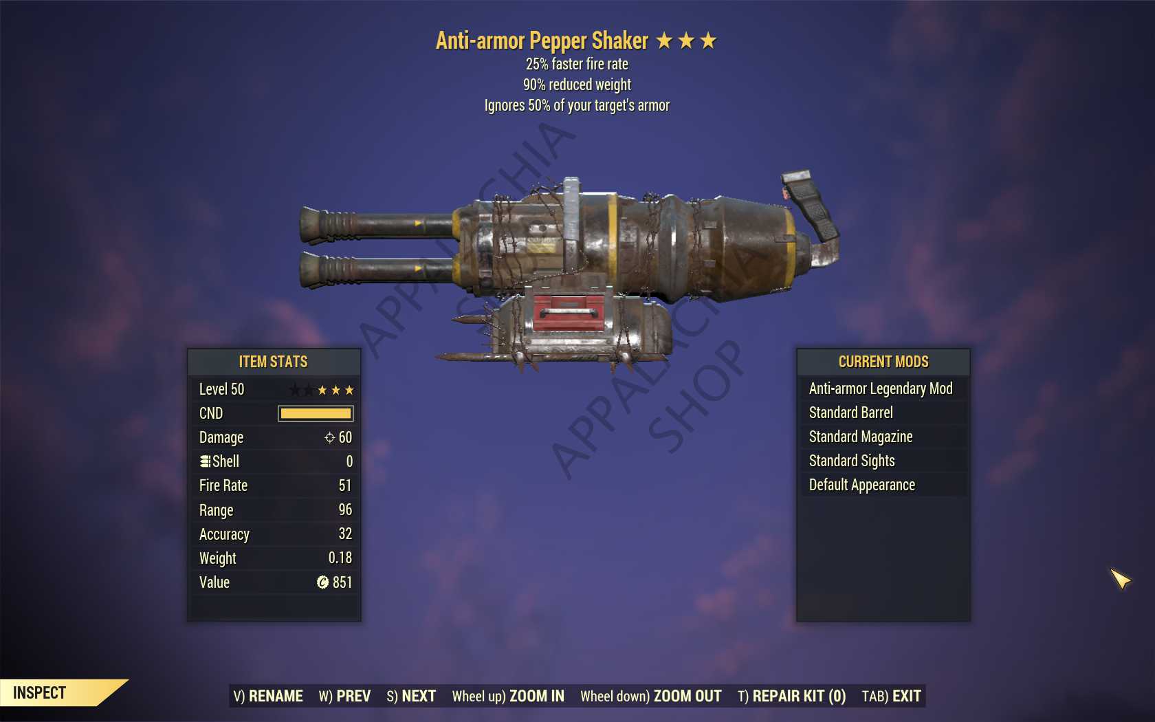 Anti-Armor Pepper Shaker (25% faster fire rate, 90% reduced weight)