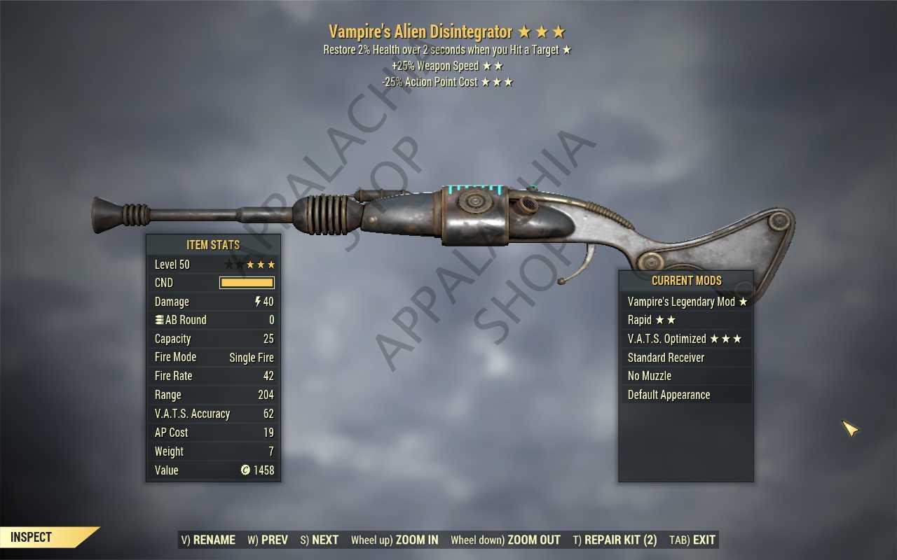 Vampire's Alien Disintegrator (25% faster fire rate, 35% less VATS AP cost)