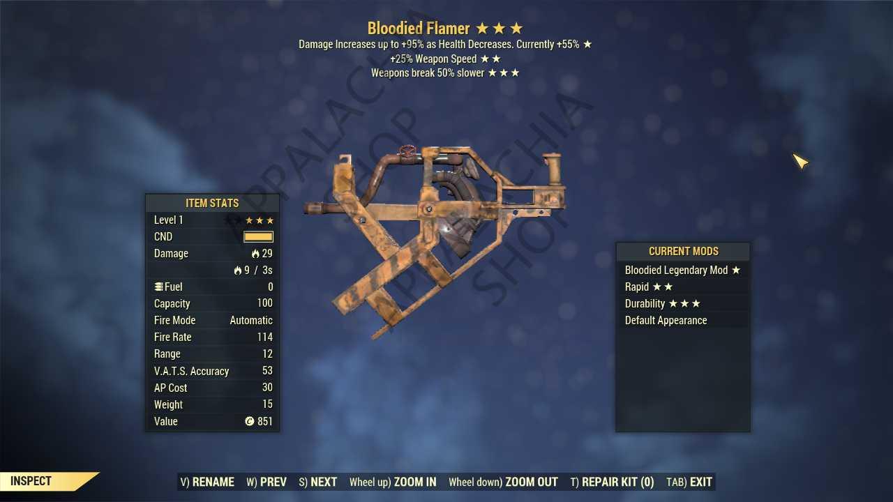 [1 lvl]Bloodied Flamer (25% faster fire rate, Breaks 50% slower)[partical invisible]