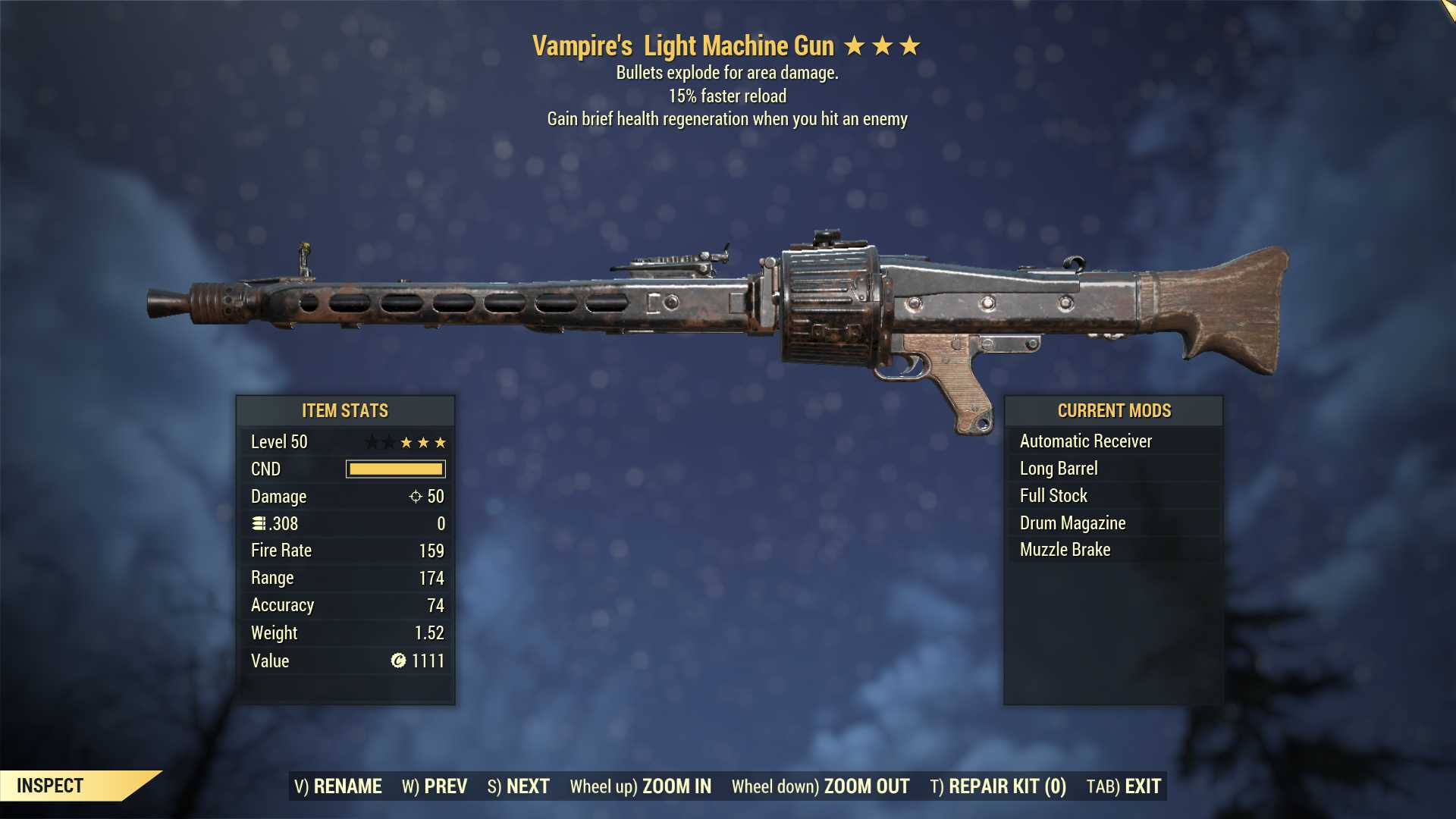 Vampire's Explosive Light Machine Gun (LMG) (15% faster reload)