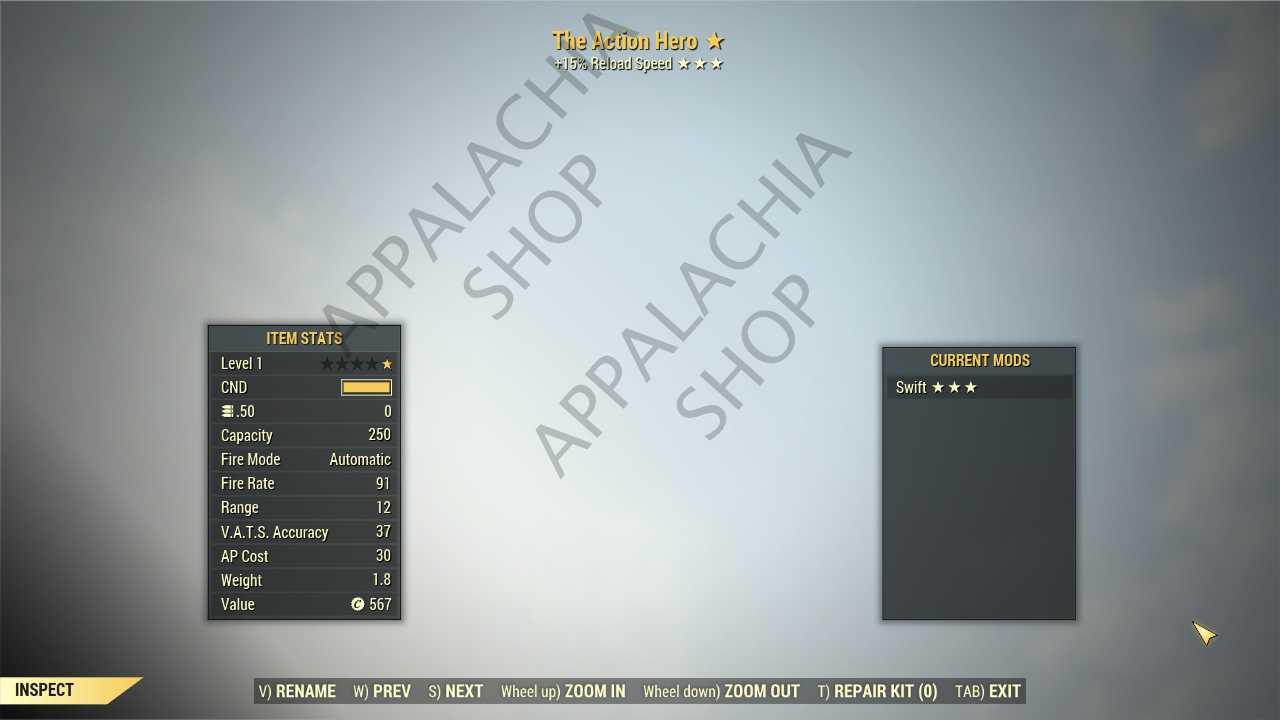 .50 Cal Machine Gun The Action Hero (15% faster reload)[1 lvl][invisible] [No Damage] [Collector item]