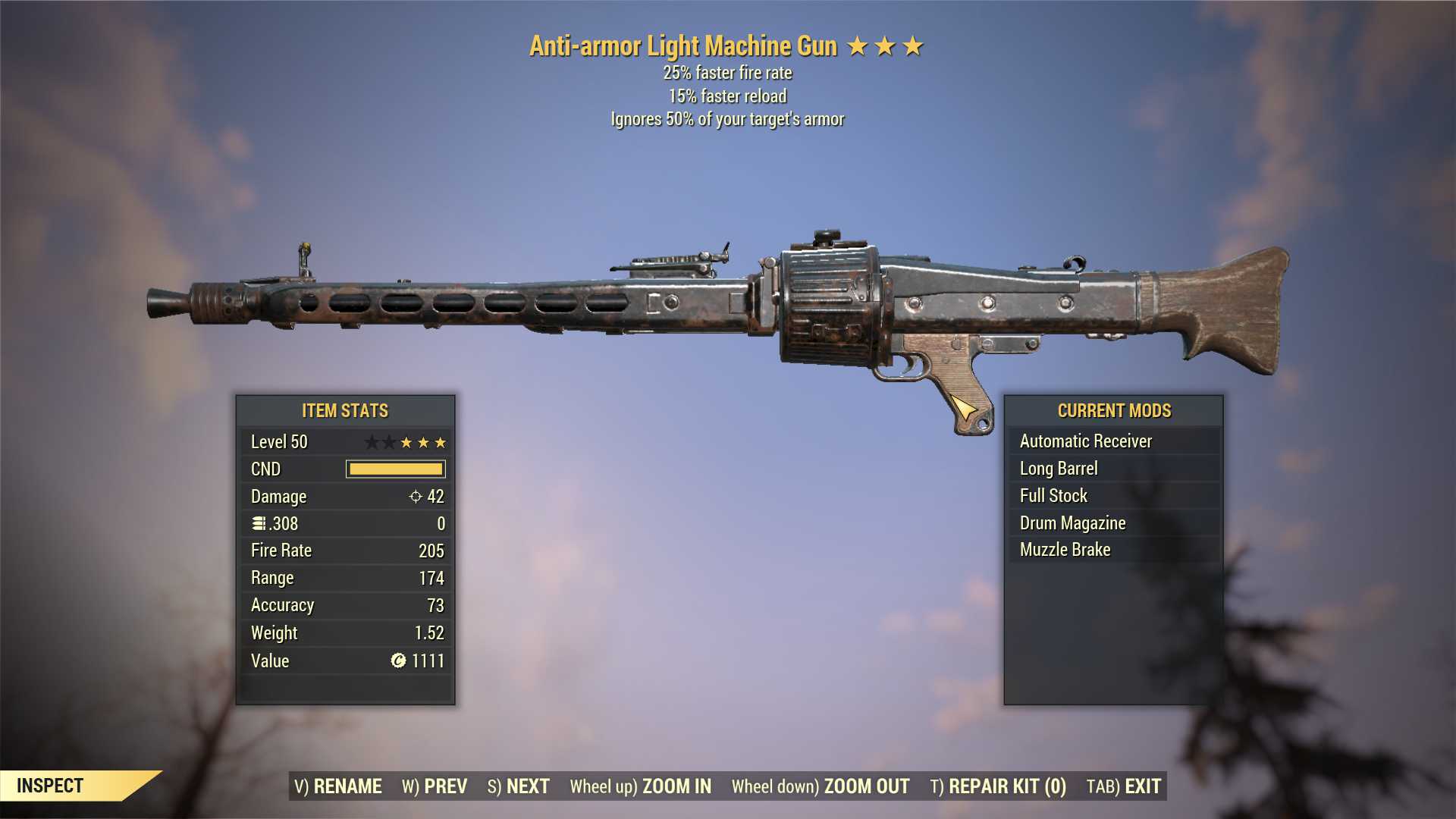 Anti-Armor Light Machine Gun (LMG) (25% faster fire rate, 15% faster reload)