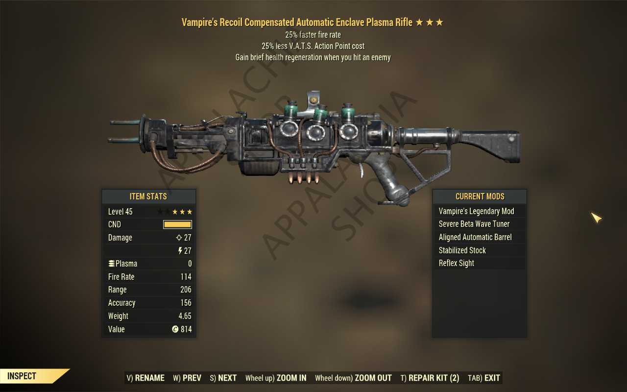 Vampire's Enclave Plasma rifle (25% faster fire rate, 35% less VATS AP cost)