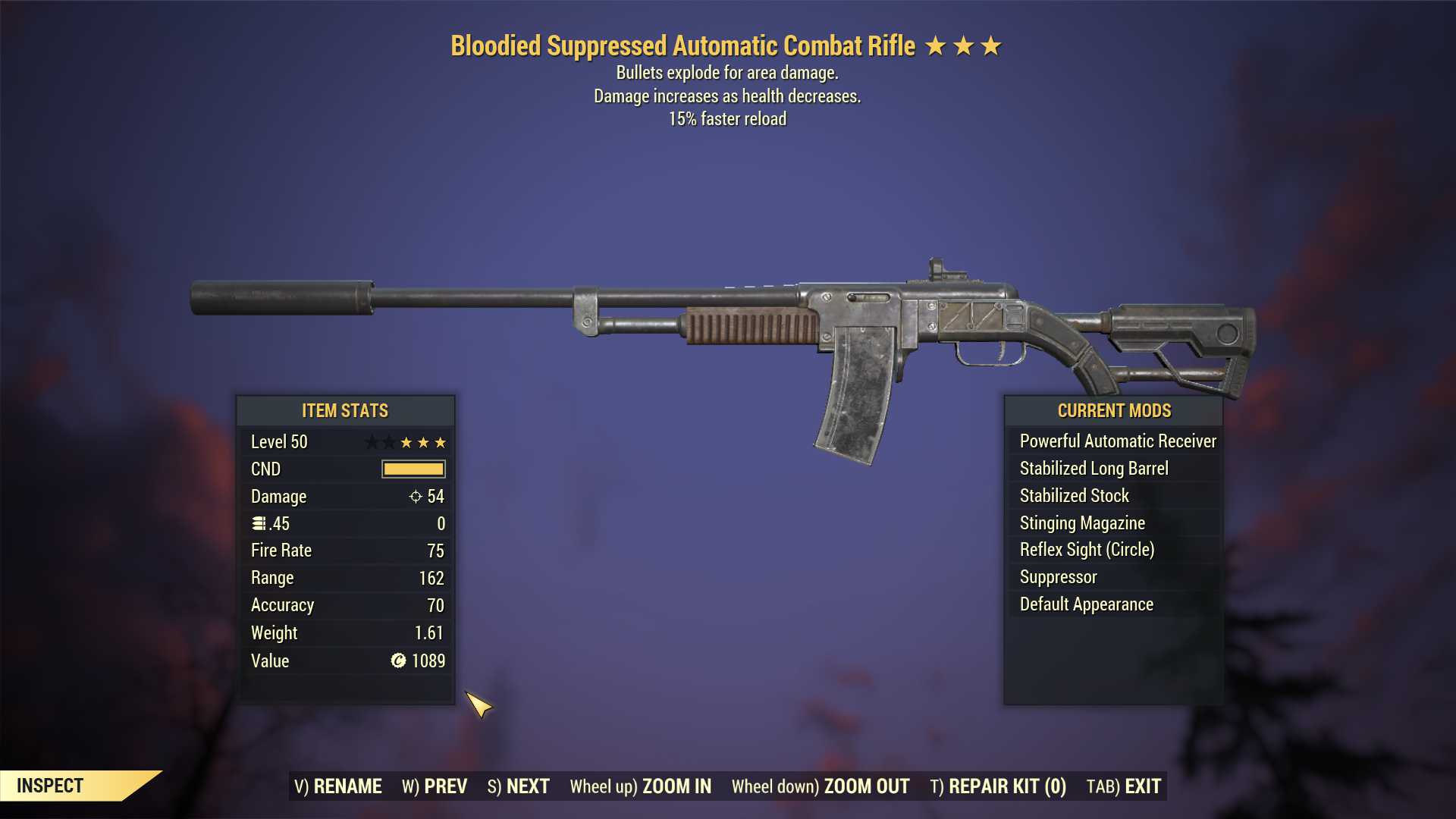 Bloodied Explosive Combat Rifle (15% faster reload)