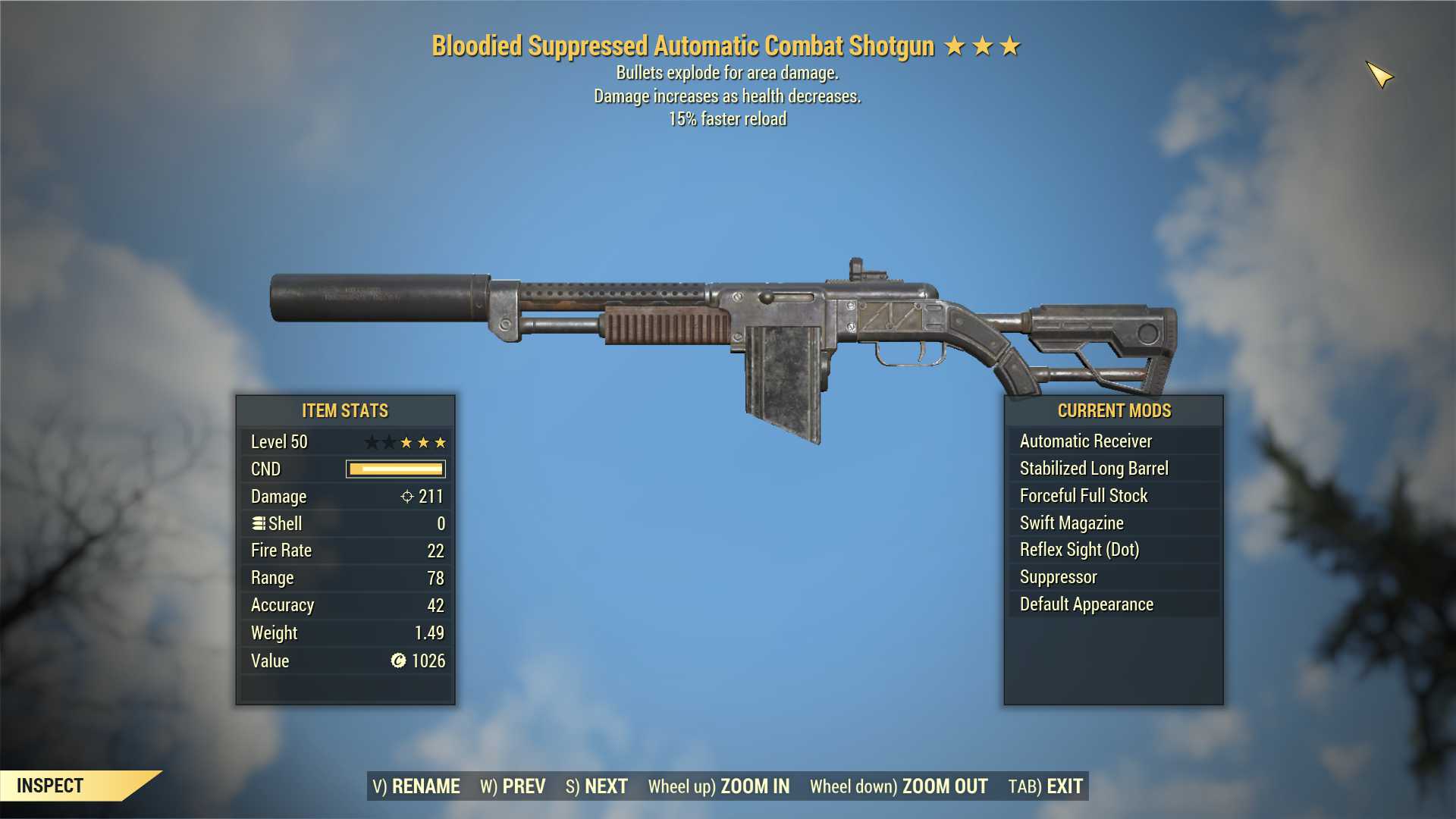 Bloodied Explosive Combat Shotgun (15% faster reload)