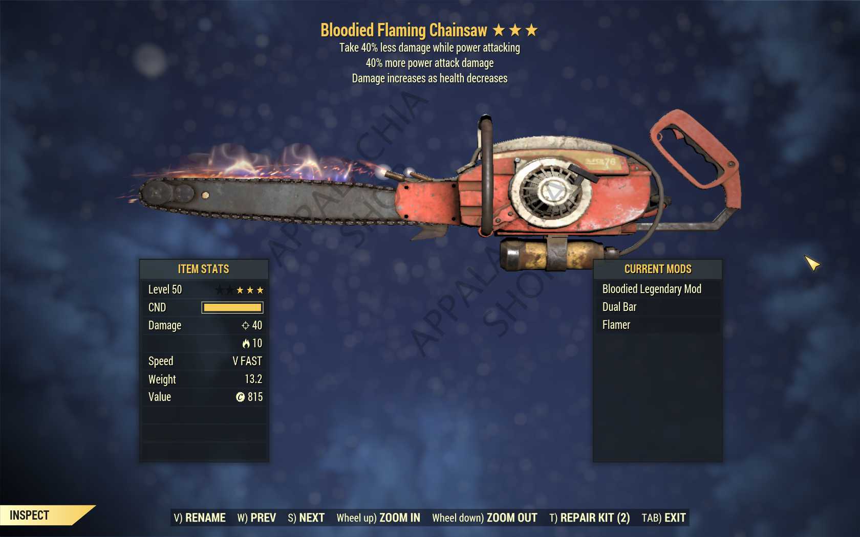 Bloodied Chainsaw (+40% damage PA, 40% resist while PA)