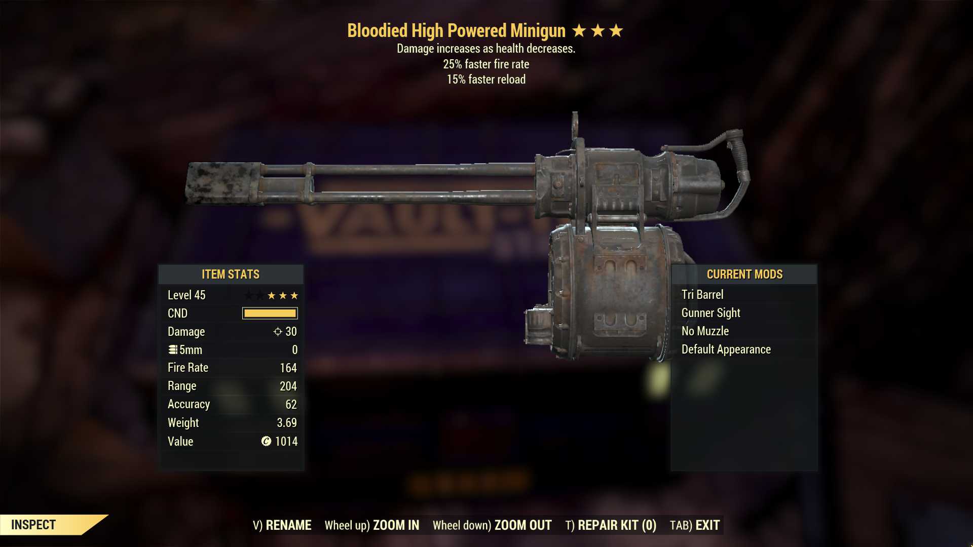 Bloodied Minigun (25% faster fire rate, 15% faster reload)
