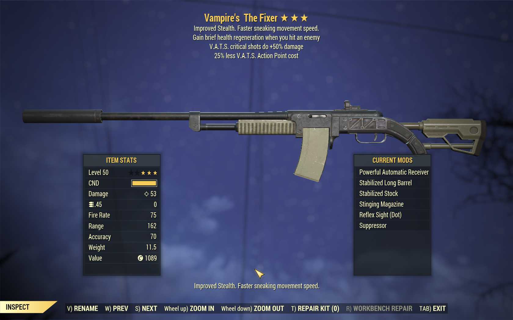 Vampire's The Fixer (+50% critical damage, 35% less VATS AP cost)
