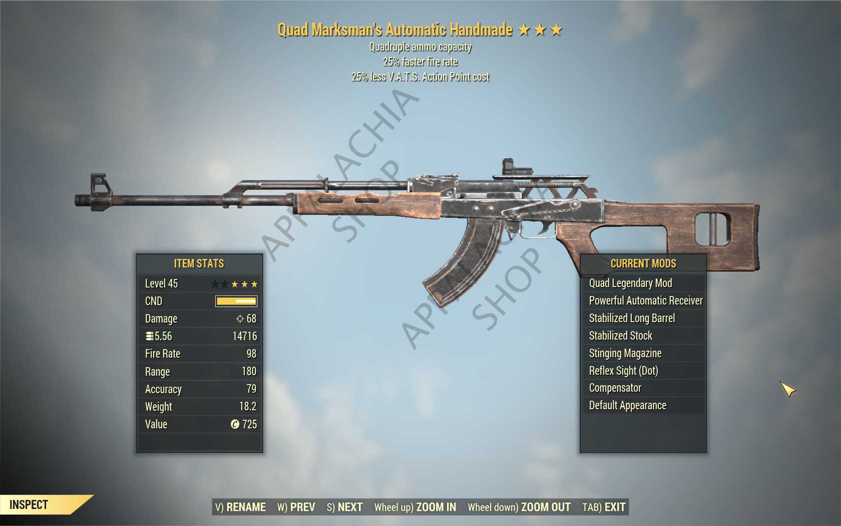 Quad Handmade (25% faster fire rate, 35% less VATS AP cost)
