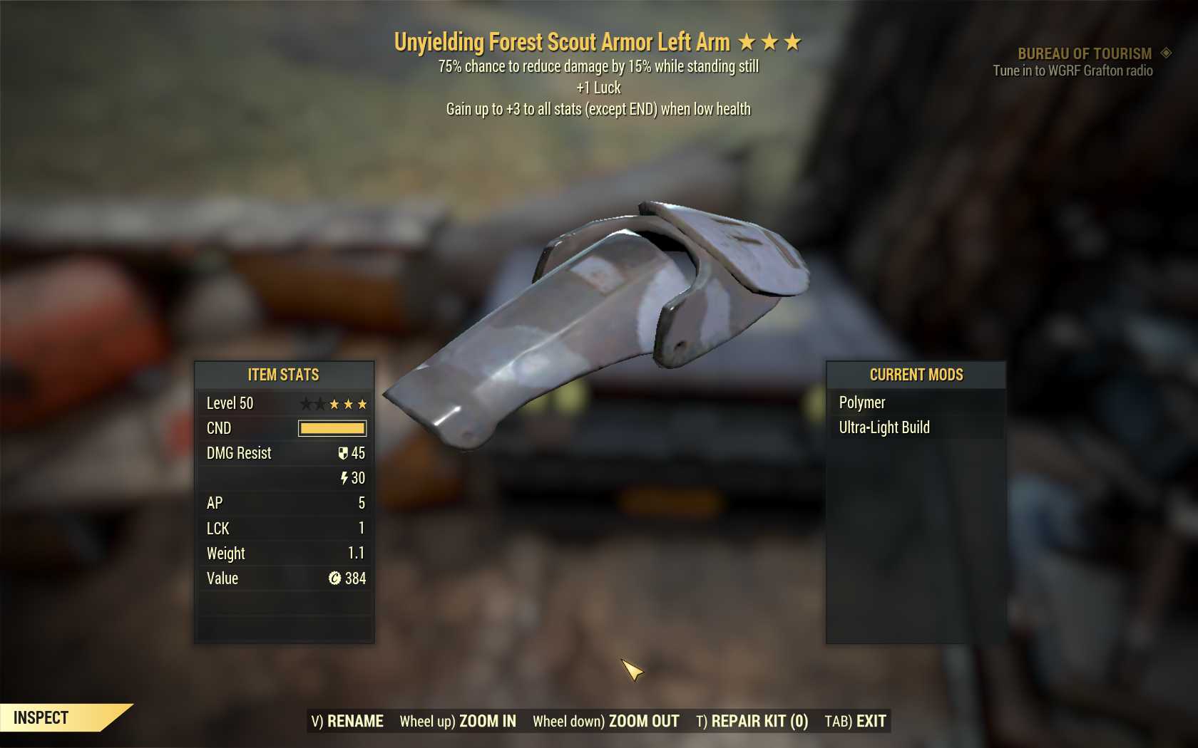 [UNY LUCK SENT]Unyielding Sentinel Scout Armor Set (+5 LUCK) [Forest]