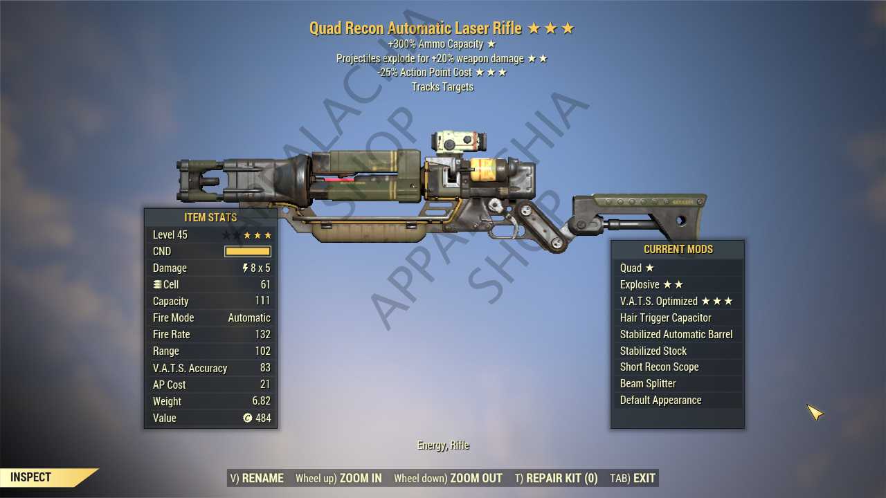 Quad Explosive Laser rifle (35% less VATS AP cost)