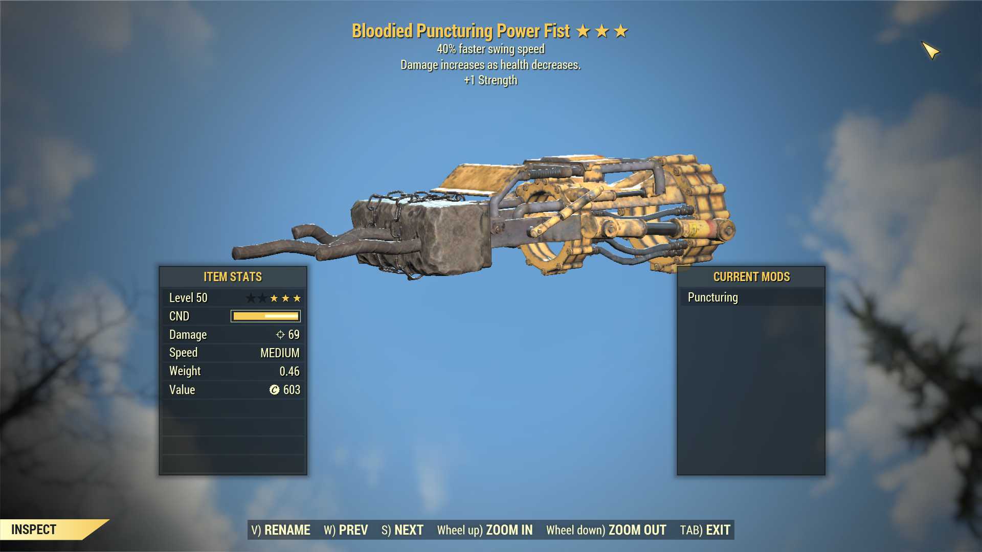 Bloodied Power Fist (40% Faster Swing Speed, +1 Strength)