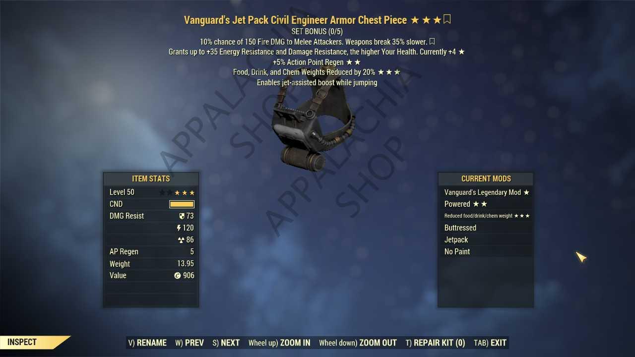 [VAN AP FDCWR]Vanguard's Food Drink Chem Weight Reduction Civil Engineer Armor Set (5/5 AP)[JETPACK]