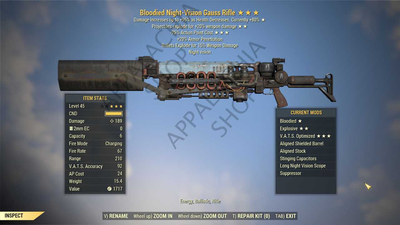Bloodied Explosive Gauss Rifle (35% less VATS AP cost)