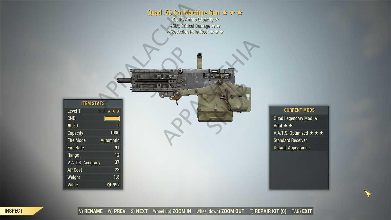 Quad .50 Cal Machine Gun (+50% critical damage, 35% less VATS AP cost)[1 lvl][particle invisible] [No Damage] [Collector item]