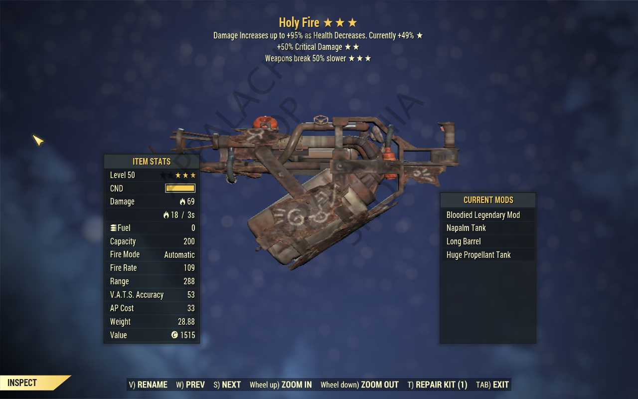 Bloodied Holy Fire (+50% critical damage, Breaks 50% slower)