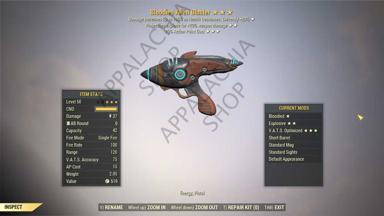 Bloodied Explosive Alien Blaster (35% less VATS AP cost)