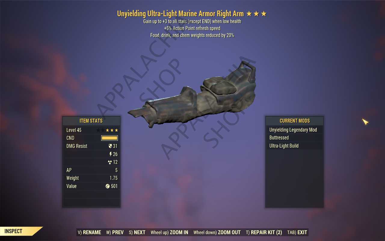 [UNY AP FDCWR]Unyielding Food Drink Chem Weight Reduction Marine Armor Set (5/5 AP)