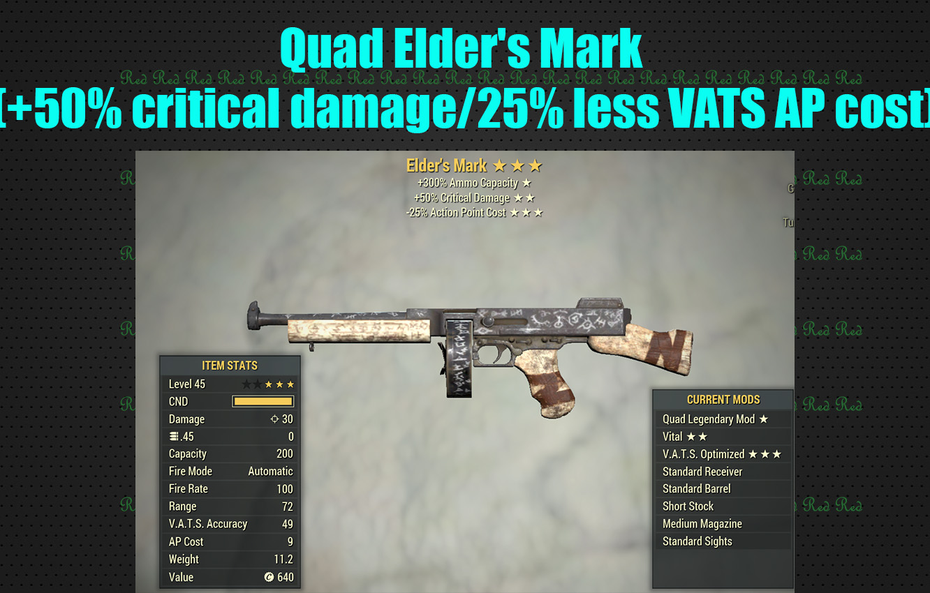 Quad Elder's Mark (+50% critical damage/25% less VATS AP cost)