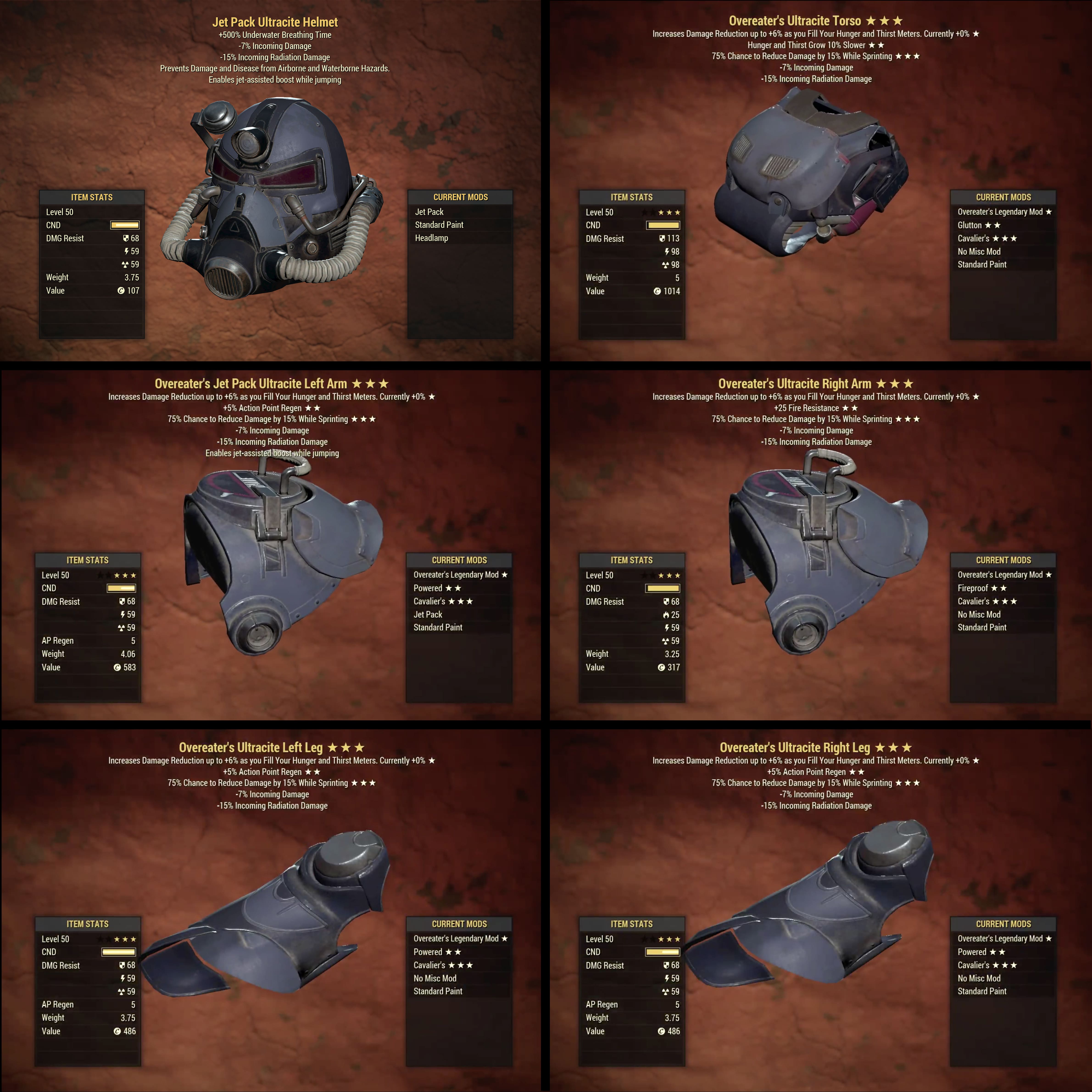 This listing includes a full set of legendary Ultracite Power Armor (max level), with each piece of armor having the following effect: