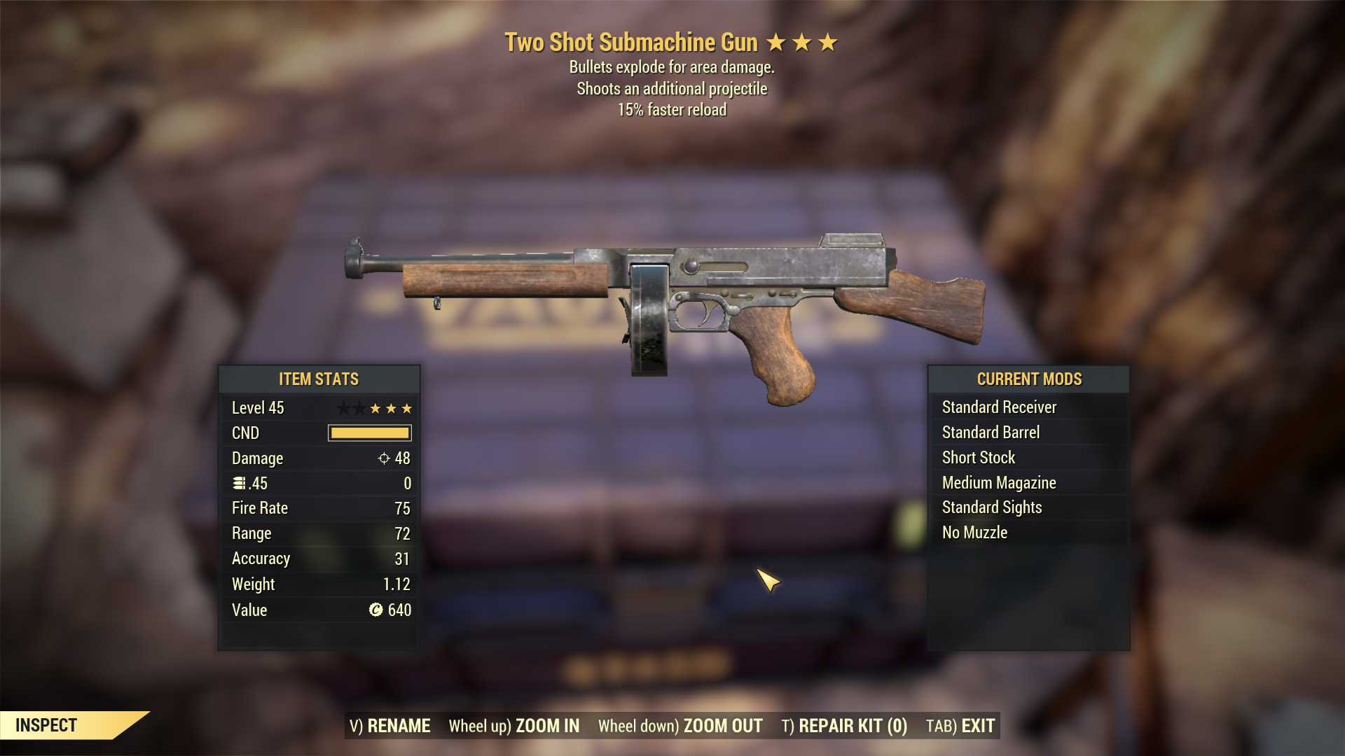 Two Shot Explosive Submachine Gun (15% faster reload)