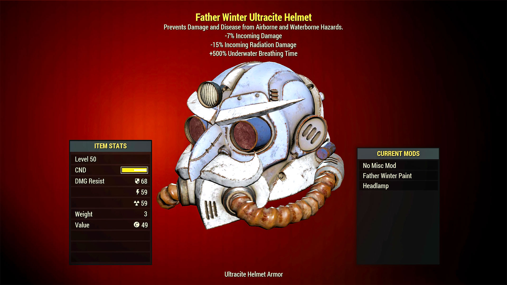 Father Winter Ultracite Power Armor Helmet Level 50