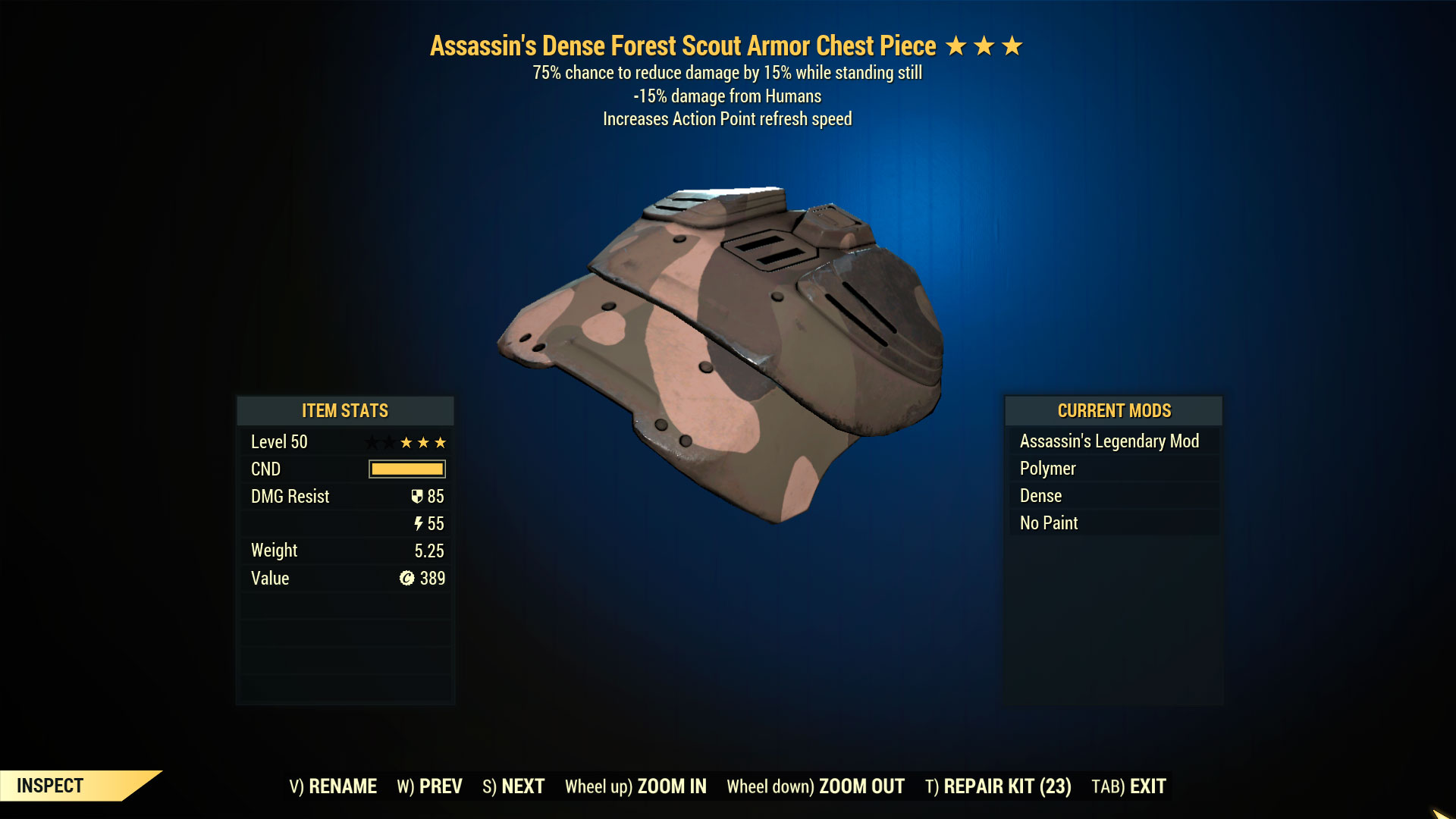 75% chance to reduce damage by 15% while standing still